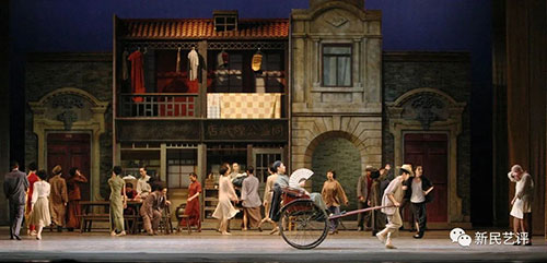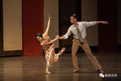 周璇的金曲将人们带回了上世纪三、四十年代的上海。石库门里弄前,行人如织,络绎不绝,铺陈出一幅海派风情画卷。街市喧闹,商贩、水手、车夫在嬉笑怒骂中呈现出市井百态。独舞“小滑头”阿林的出场惟妙惟肖,令人捧腹。他的舞蹈动作,忽上忽下,夸张藻饰,如同一位“呒青头”的纨绔青年。群舞编排则结合了爵士舞、现代舞,以及一些哑剧的肢体设计,恰如其分地描绘了摩登都市的市景群像。