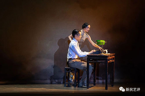 李先生在家独自撰写小说,将心事付于所写的小说文稿之中。孤独或非无由而生,而是有所念。电影之中李先生将武侠小说给王太太看的桥段,在舞剧中被赋予了更加意象化的表达:两位舞者舞动的想象空间,成了李先生心中的二人世界,他们跳着欢快轻盈的舞步,多少伤心事,只能在梦中实现。