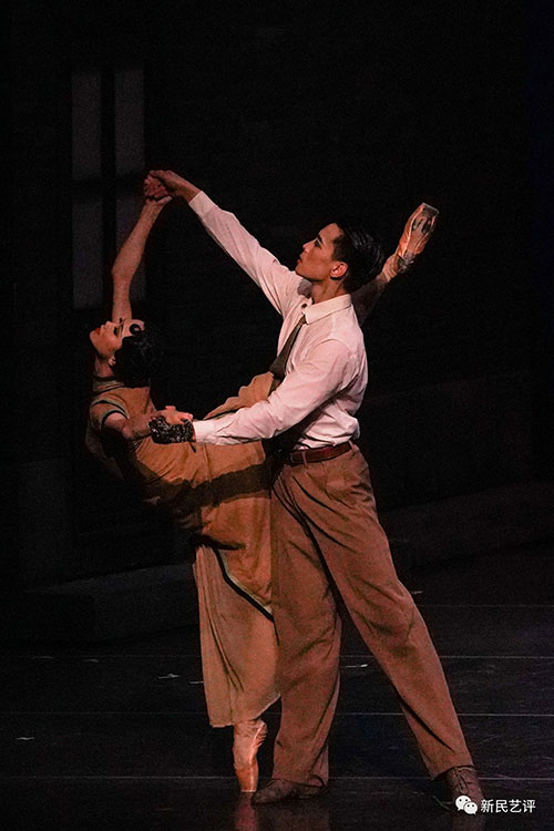 纵观全剧,主角三段双人舞的情感递增和演进,可说是整部舞剧的戏剧设计和动作设计核心,正是层层双人舞的渲染铺垫,才使得结局时分,李先生在雨中形单影只的背影令人唏嘘,用“有”的多姿,烘托“无”的冷寂。