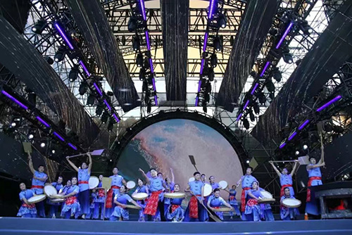 奉贤区文化馆群贤舞蹈团的《烟雨流金》创作于2022年初,以奉贤国家级非遗项目“滚灯”为主要表现内容,不仅展现了动静相宜的舞蹈特点,也体现了奉贤区非遗保护与传承工作的成果。打莲湘作为非物质文化遗产,有着浓浓的中国特色。老港镇踏歌莲湘队的《莲湘异彩》在音乐上加入了莲湘棒的原始音律,在动作风格设计上既保留了传统敲击的动律,还加入了中国棍术及曳步舞的元素,使舞蹈动作充满了力与柔之美。徐汇区文化馆芳菲舞蹈团《广场上的快乐音符》融入了中国古典舞蹈元素以及中国传统武术咏春拳的动作,将青春活力的流行舞与中国传统舞蹈、武术文化相结合。